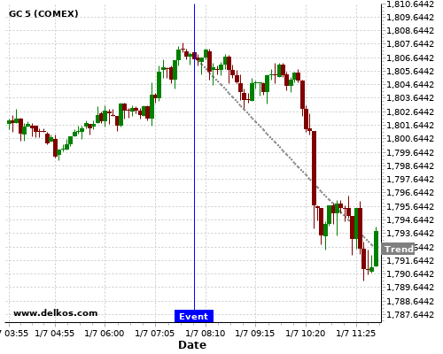 If the number is less than than economists’ consensus there is a 83.33% probability that GC will trend down following the news event.