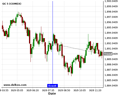 DELKOS 83.33% probability that GC will trend down on Tuesday 05 Jan at 08:55 AM GMT if the DE Unemployment Rate number is less than 6.1%.