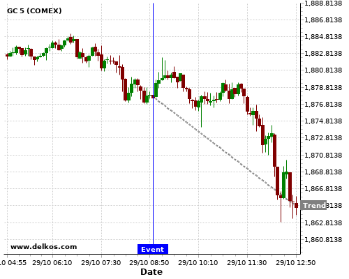 If the number is less than than economists’ consensus there is a 83.33% probability that GC will trend down following the news event.