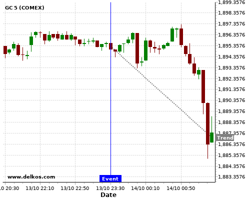 If the number is greater than than economists’ consensus there is a 83.33% probability that GC will trend down following the news event.