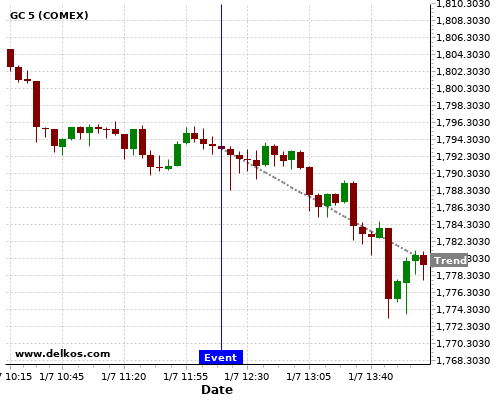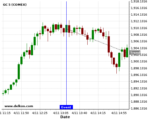 If the number is less than than economists’ consensus there is a 83.33% probability that GC will trend down following the news event.