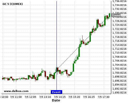 If the number is less than than economists’ consensus there is a 83.33% probability that GC will trend up following the news event.