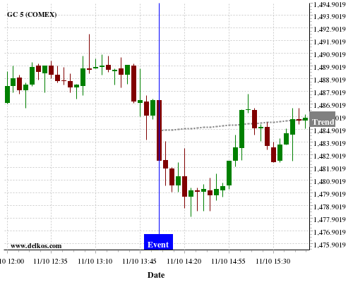 If the number is greater than than economists’ consensus there is a 83.33% probability that GC will trend up following the news event.