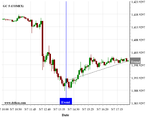 If the number is less than than economists’ consensus there is a 83.33% probability that GC will trend up following the news event.