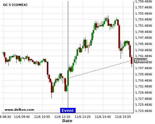 If the number is greater than than economists’ consensus there is a 83.33% probability that GC will trend up following the news event.