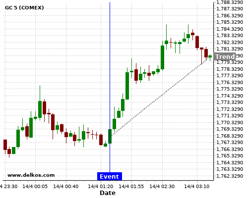 If the number is less than than economists’ consensus there is a 83.33% probability that GC will trend up following the news event.