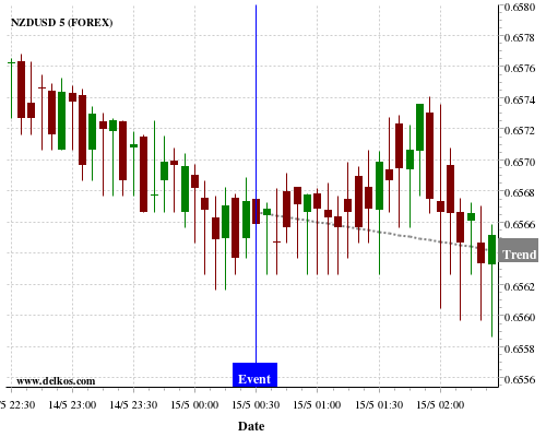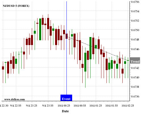 If the number is greater than than economists’ consensus there is a 83.33% probability that NZDUSD will trend down following the news event.