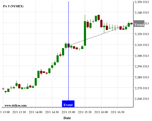 If the number is greater than than economists’ consensus there is a 83.33% probability that PA will trend up following the news event.