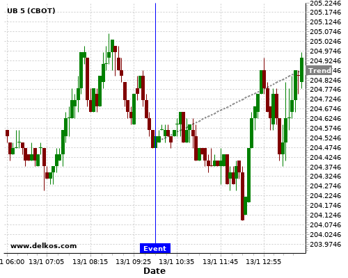 This probability is based on the last 12 EMU Industrial Production YoY events, in which 5 of the last 6 events where the actual number was greater than than the economist consensus resulted in an up trend of UB.
