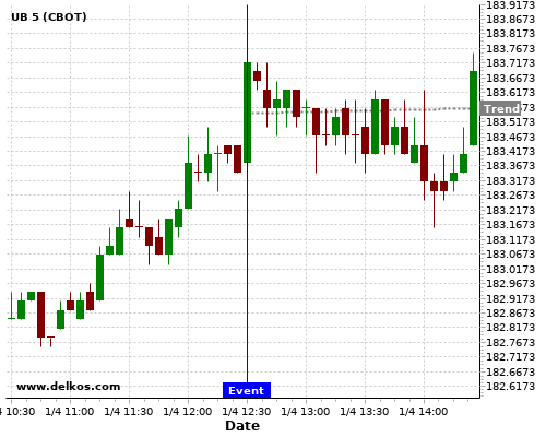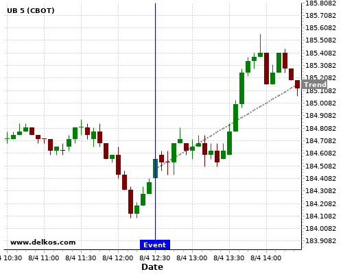 This probability is based on the last 12 US Continuing Jobless Claims events, in which 5 of the last 6 events where the actual number was greater than than the economist consensus resulted in an up trend of UB.