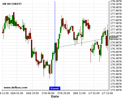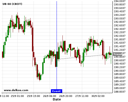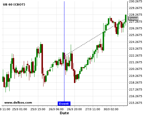 This probability is based on the last 12 US GDP Growth Rate QoQ Final events, in which 4 of the last 6 events where the actual number was equal to than the economist consensus resulted in an up trend of UB.
