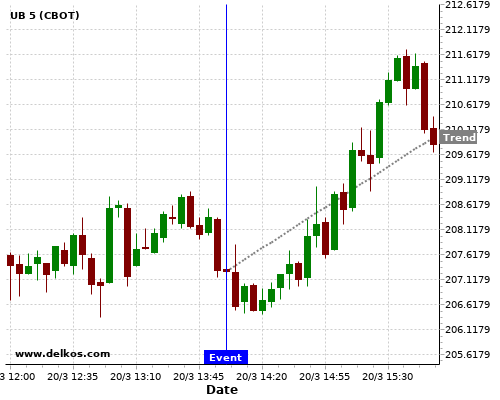 This probability is based on the last 12 US Existing Home Sales events, in which 3 of the last 6 events where the actual number was greater than than the economist consensus resulted in an up trend of UB.