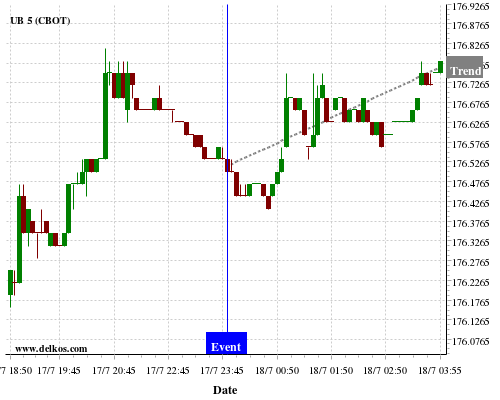 This probability is based on the last 12 JP Balance of Trade events, in which 5 of the last 6 events where the actual number was greater than than the economist consensus resulted in an up trend of UB.