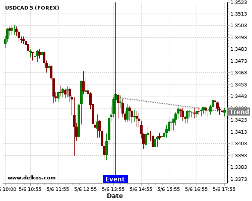 If the number is greater than than economists’ consensus there is a 83.33% probability that USDCAD will trend down following the news event.
