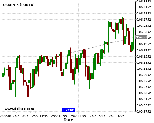 If the number is less than than economists’ consensus there is a 83.33% probability that USDJPY will trend up following the news event.