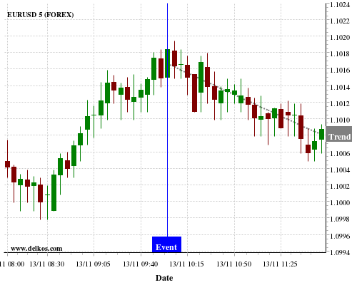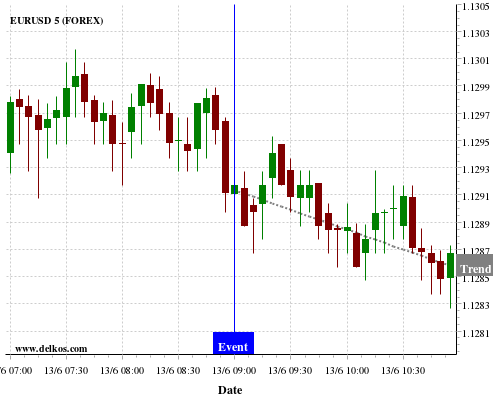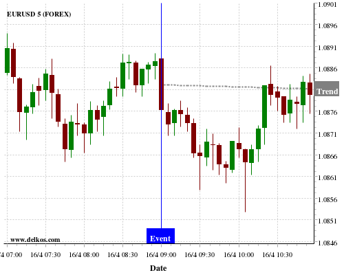 Если показатель Выше чем консенсус экономистов существует 85.71% вероятность того, что EURUSD будет падать после новостного события.
