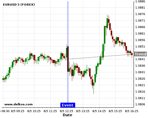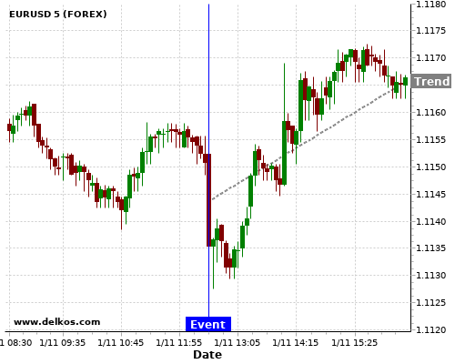 Эта вероятность основывается на последних 12 новостных событиях US Non Farm Payrolls, во время которых в 2 из 7 случаев, когда фактическое значение показателя было Выше чем консенсус экономистов – будет расти EURUSD.