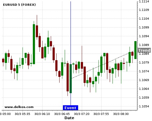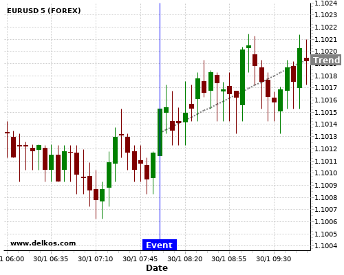 Если показатель Выше чем консенсус экономистов существует 85.71% вероятность того, что EURUSD будет расти после новостного события.
