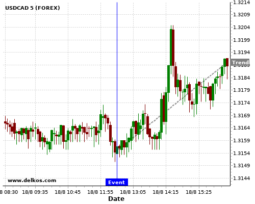 Если показатель Выше чем консенсус экономистов существует 85.71% вероятность того, что USDCAD будет расти после новостного события.