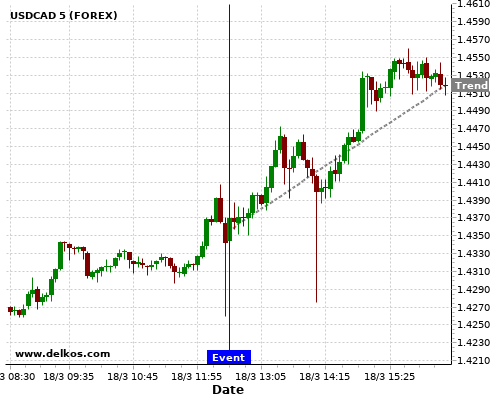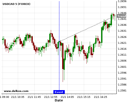 Если показатель Выше чем консенсус экономистов существует 85.71% вероятность того, что USDCAD будет расти после новостного события.