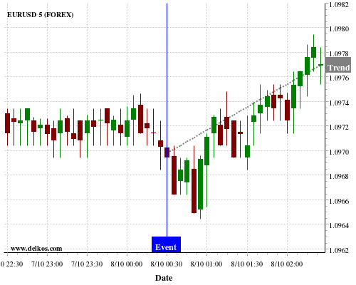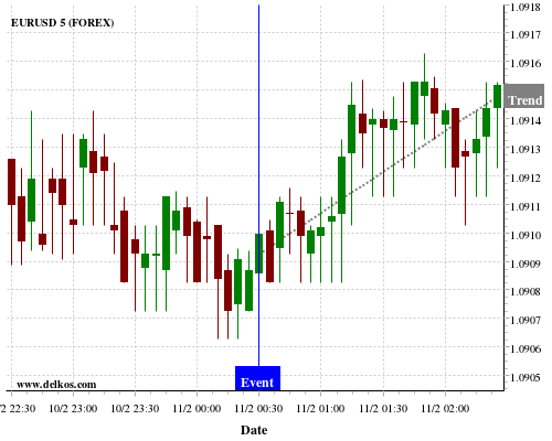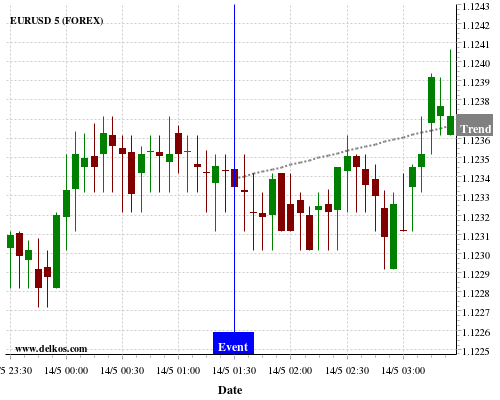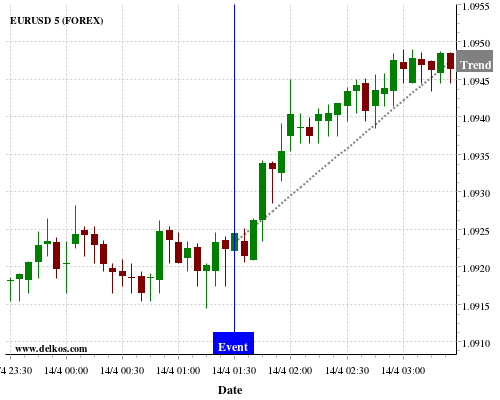 If the number is less than than economists’ consensus there is a 85.71% probability that EURUSD will trend up following the news event.
