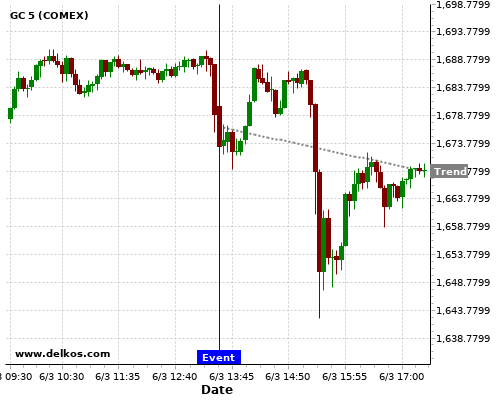 If the number is greater than than economists’ consensus there is a 85.71% probability that GC will trend down following the news event.