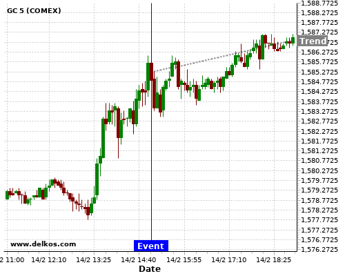 If the number is greater than than economists’ consensus there is a 85.71% probability that GC will trend up following the news event.