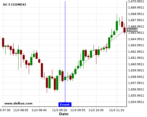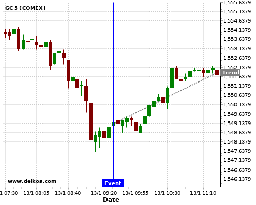 If the number is greater than than economists’ consensus there is a 85.71% probability that GC will trend up following the news event.