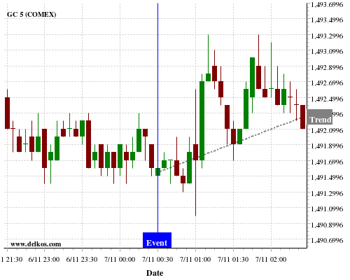 If the number is greater than than economists’ consensus there is a 85.71% probability that GC will trend up following the news event.