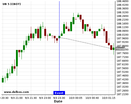 This probability is based on the last 12 AU Westpac Consumer Confidence Index events, in which 6 of the last 7 events where the actual number was greater than than the economist consensus resulted in an down trend of UB.