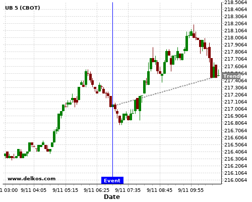 This probability is based on the last 12 DE Balance of Trade events, in which 6 of the last 7 events where the actual number was greater than than the economist consensus resulted in an up trend of UB.