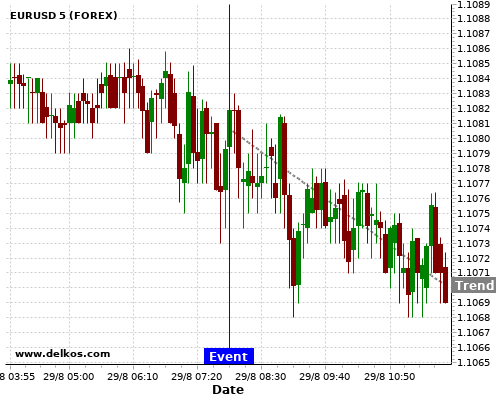 Если показатель равно консенсус экономистов существует 87.5% вероятность того, что EURUSD будет падать после новостного события.