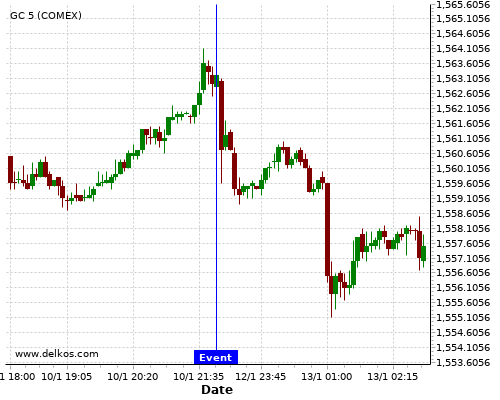 If the number is greater than than economists’ consensus there is a 87.5% probability that GC will trend down following the news event.