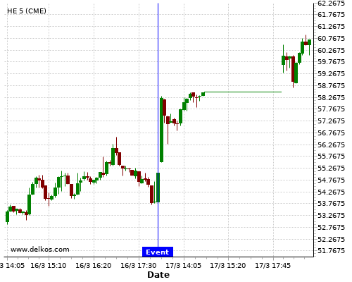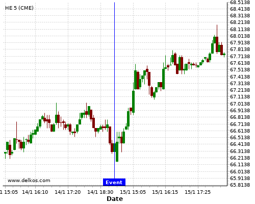 If the number is less than than economists’ consensus there is a 87.5% probability that HE will trend up following the news event.