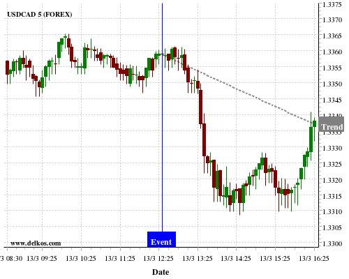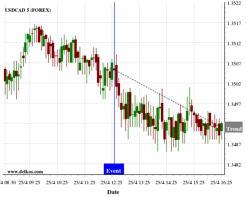 If the number is greater than than economists’ consensus there is a 87.5% probability that USDCAD will trend down following the news event.