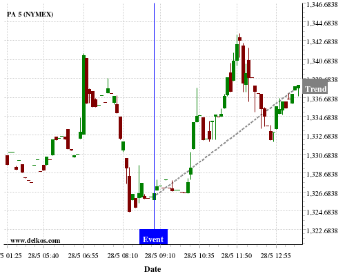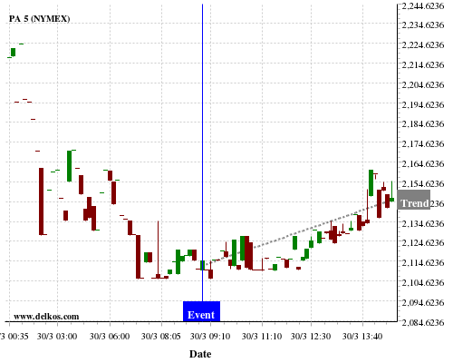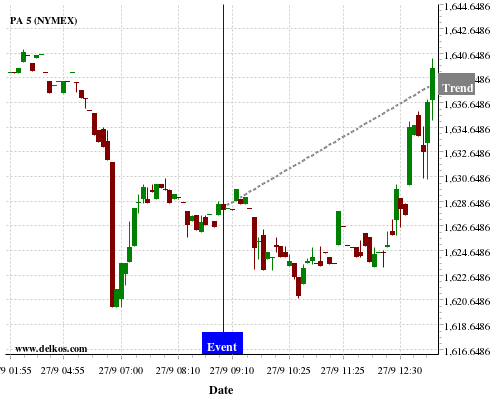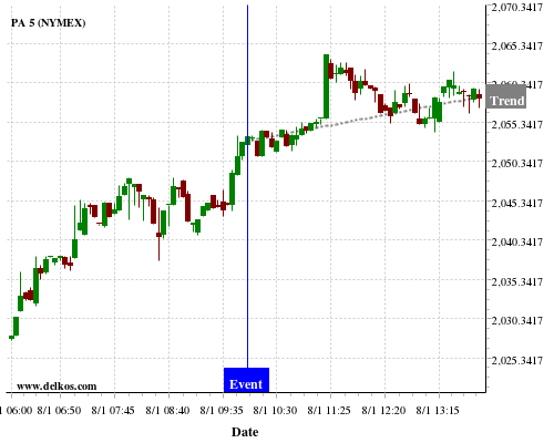 If the number is less than than economists’ consensus there is a 88.88% probability that PA will trend up following the news event.