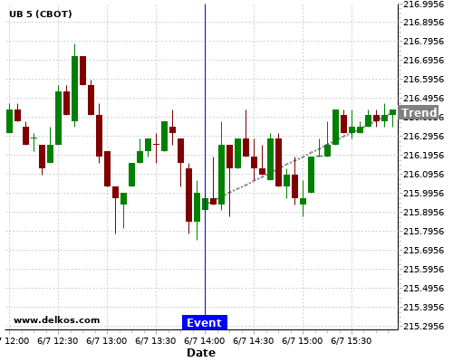 This probability is based on the last 12 US ISM Non-Manufacturing PMI events, in which 6 of the last 9 events where the actual number was greater than than the economist consensus resulted in an up trend of UB.