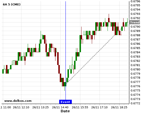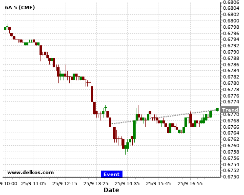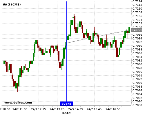 This probability is based on the last 12 US New Home Sales events, in which 4 of the last 10 events where the actual number was greater than than the economist consensus resulted in an up trend of 6A.