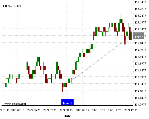 This probability is based on the last 12 GB GDP Growth Rate QoQ Final events, in which 7 of the last 10 events where the actual number was equal to than the economist consensus resulted in an up trend of UB.