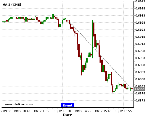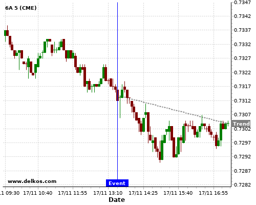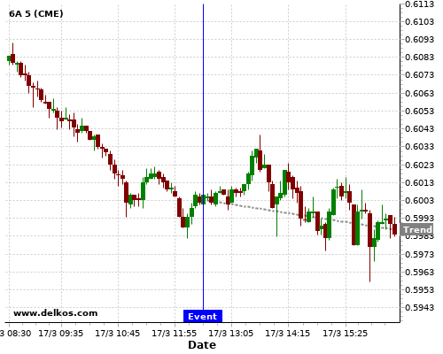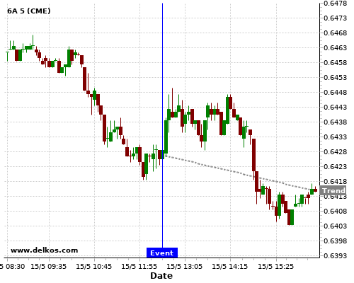 This probability is based on the last 12 US Retail Sales MoM events, in which 5 of the last 7 events where the actual number was less than than the economist consensus resulted in an down trend of 6A.