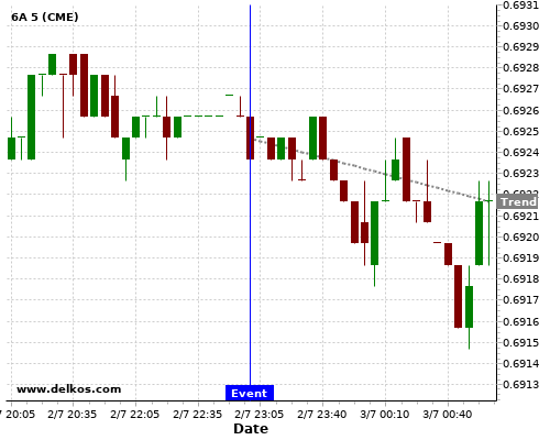 There is a 71.42% probability that 6A will trend down for the next few hours.