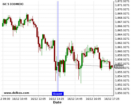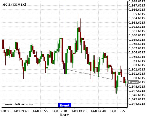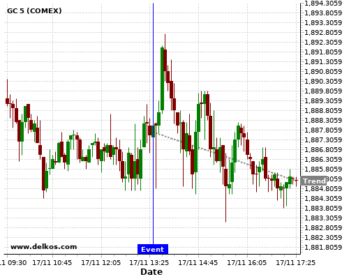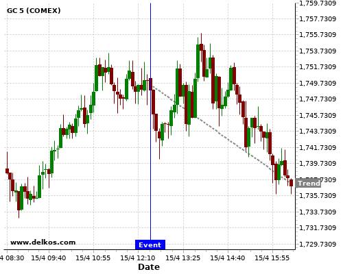 This probability is based on the last 12 US Retail Sales MoM events, in which 5 of the last 7 events where the actual number was less than than the economist consensus resulted in an down trend of GC.