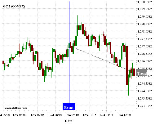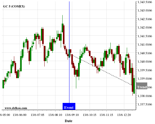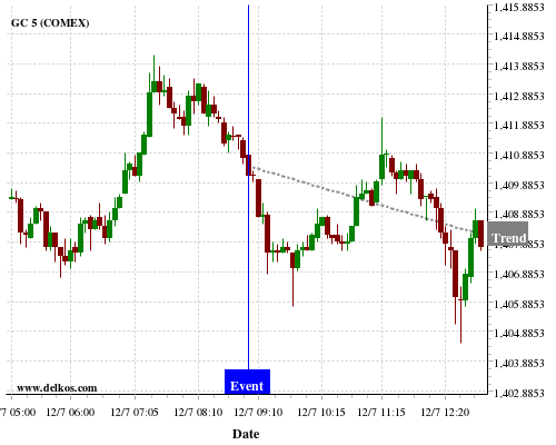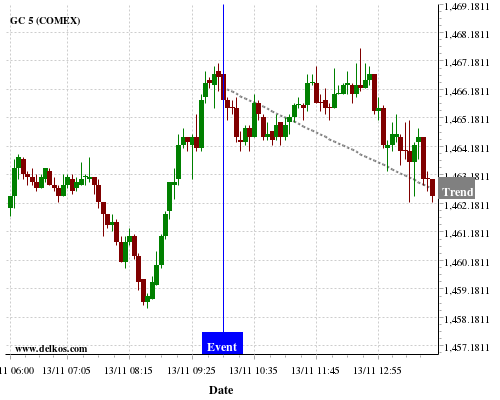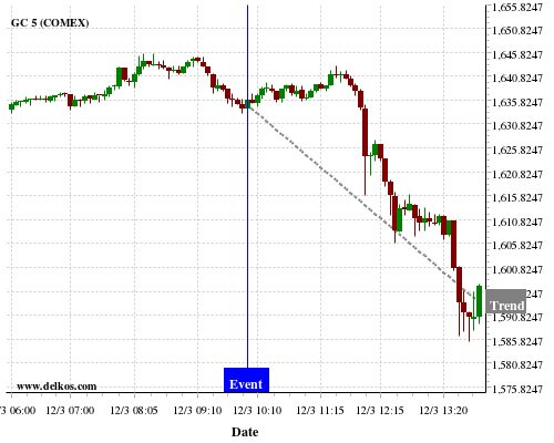 This probability is based on the last 12 EMU Industrial Production YoY events, in which 5 of the last 7 events where the actual number was greater than than the economist consensus resulted in an down trend of GC.