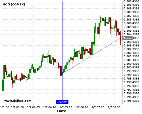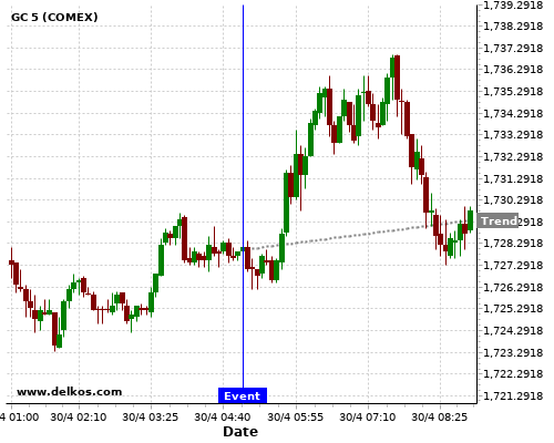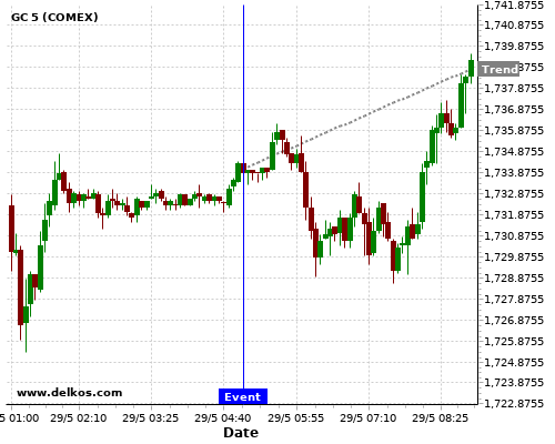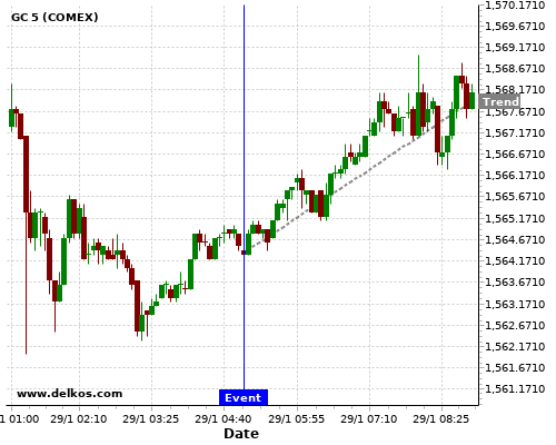 This probability is based on the last 12 JP Consumer Confidence events, in which 5 of the last 7 events where the actual number was less than than the economist consensus resulted in an up trend of GC.