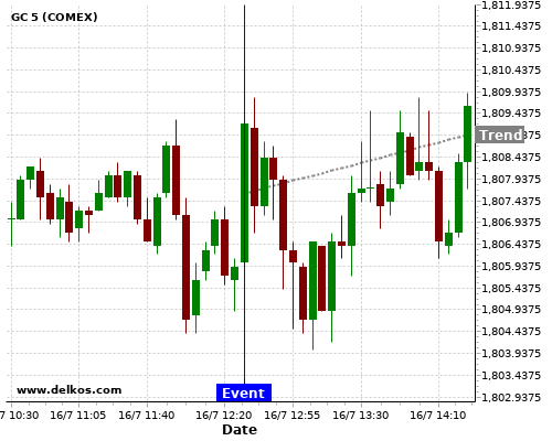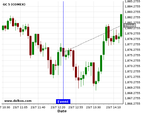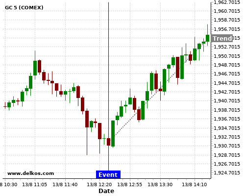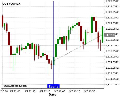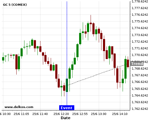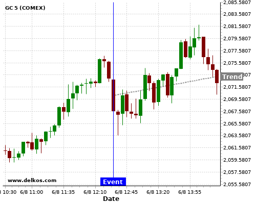 This probability is based on the last 12 US Continuing Jobless Claims events, in which 6 of the last 7 events where the actual number was less than than the economist consensus resulted in an up trend of GC.