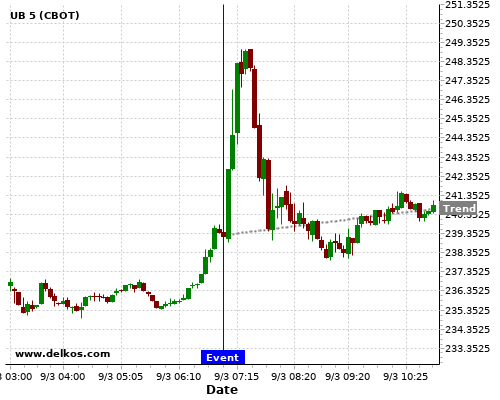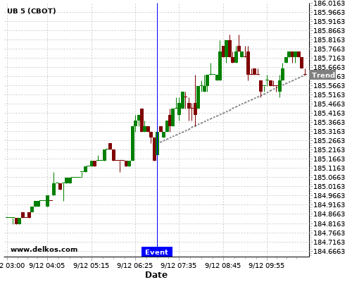 This probability is based on the last 12 DE Balance of Trade events, in which 5 of the last 7 events where the actual number was greater than than the economist consensus resulted in an up trend of UB.