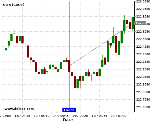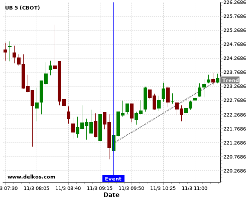 This probability is based on the last 12 GB Balance of Trade events, in which 5 of the last 7 events where the actual number was greater than than the economist consensus resulted in an up trend of UB.