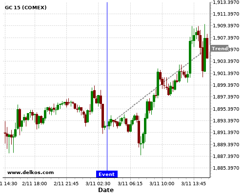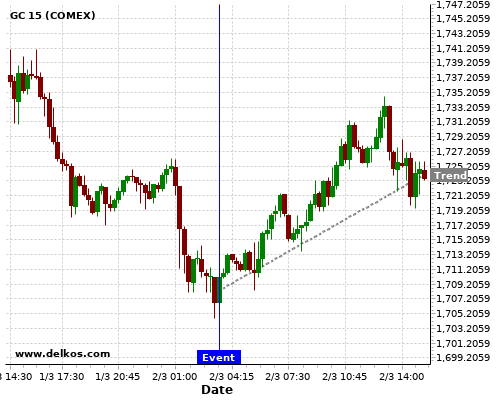 This probability is based on the last 12 AU RBA Interest Rate Decision events, in which 8 of the last 11 events where the actual number was equal to than the economist consensus resulted in an up trend of GC.