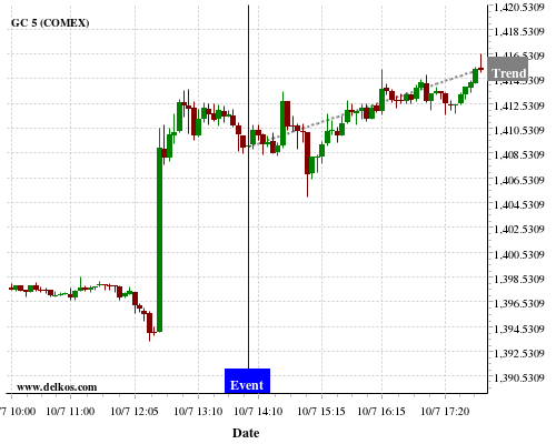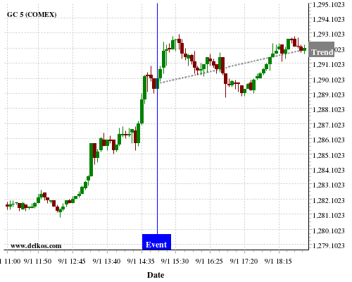 This probability is based on the last 12 CA BoC Interest Rate Decision events, in which 8 of the last 11 events where the actual number was equal to than the economist consensus resulted in an up trend of GC.