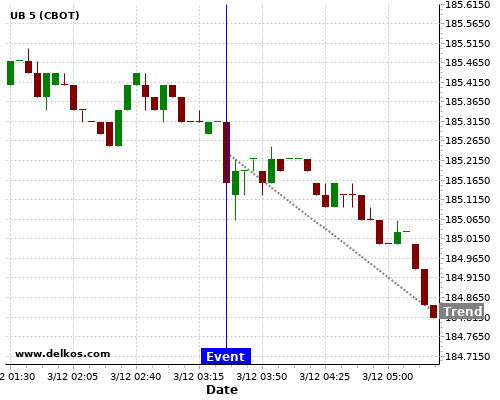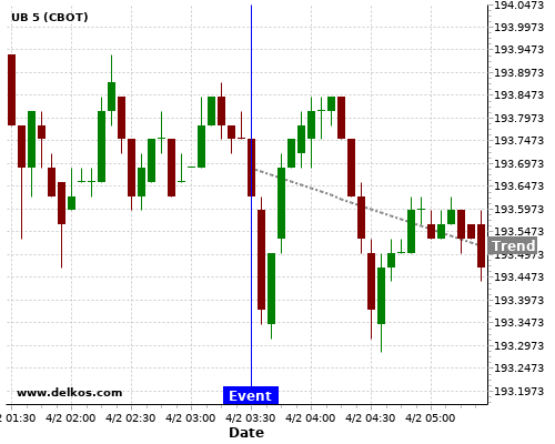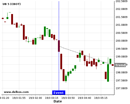 This probability is based on the last 12 AU RBA Interest Rate Decision events, in which 8 of the last 11 events where the actual number was equal to than the economist consensus resulted in an down trend of UB.